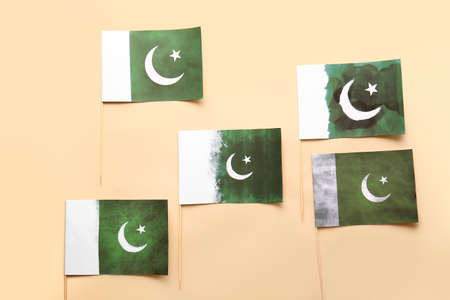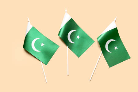 Pakistan flags on color background