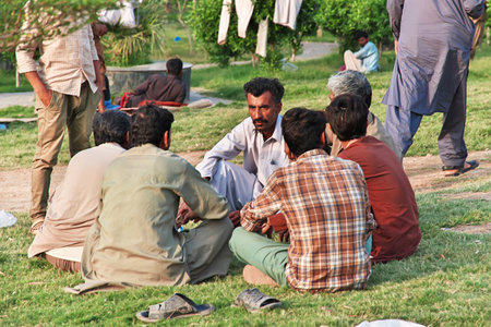 Multan, Pakistan - 26 Mar 2021: Some people in Qasim fort of Multan, Punjab province, Pakistan