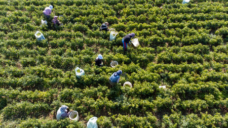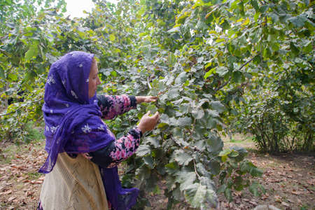 Ordu/Turkey - 08/05/2016: Seasonal workers while picking nuts