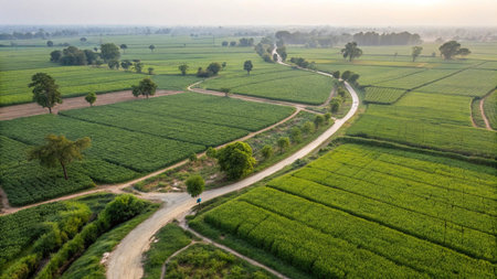 Discover the vast, verdant farmlands of Hoshiarpur, Punjab, an agricultural heartland in India, captured in stunning detail.