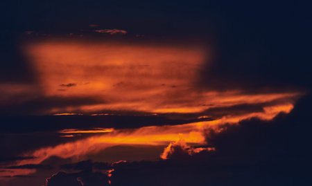 abstract horizon sunset twilight lighting dark blue and orange color unfocused surreal natural background wallpaper pattern photography with empty copy space for your text