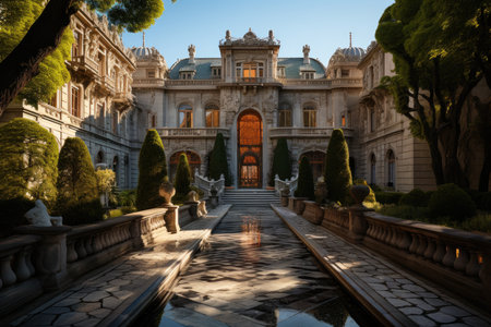 Luxury chandelier illuminates elegant domestic room in famous historic building generated by artificial intelligence
