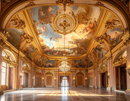 ornate ceiling details showcasing ballrooms opulence, created with generative ai