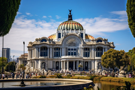 Captivating View: Palace of Fine Arts in Mexico City Shines Under a Blue Sky