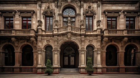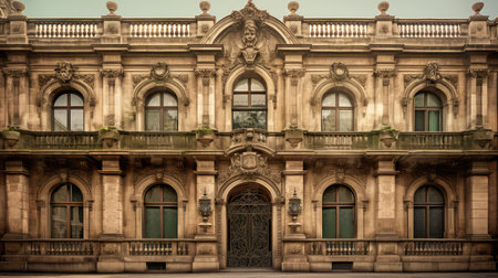 Traditional European museum building with beautiful architecture, no people. Space for copy in the foreground.