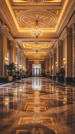 photo of an opulent hotel lobby with marble floors and grand chandeliers, ambient lighting, vertical perspective, professional photography, perfect for smartphone wallpaper --ar 9:16 --style raw --v 6.1 Job ID: 93788bf6-e4b0-4174-8f35-9db12b9c4572