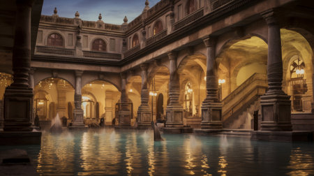 Patrons enjoy Roman bathhouse thermal baths and mosaic walls