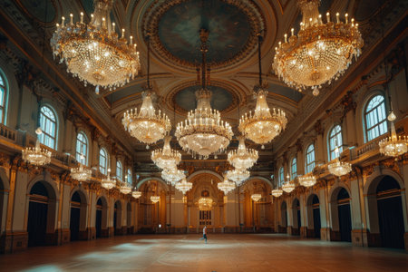 grand chandelier illuminating an elegant ballroom, created with generative ai