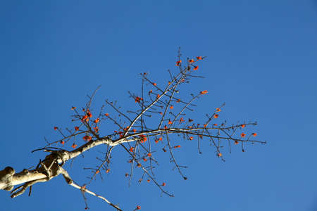 Branch of blossoming Bombax ceiba tree or Red Silk Cotton Flower