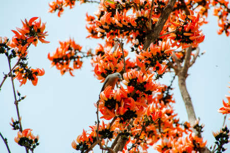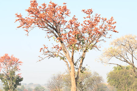 Beautiful nature of Butea monosperma on tree in Thai natural park