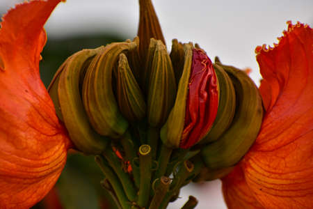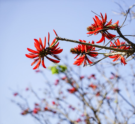beautiful blooming orange exotic tree flowers closeup Erythrina caffra