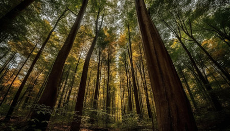 Vibrant autumn forest, tranquil beauty in nature generated by artificial intelligence