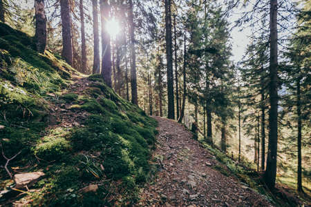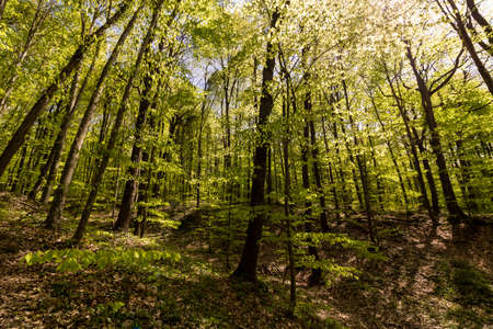 Silent Forest in spring with beautiful bright sun rays - wanderlust