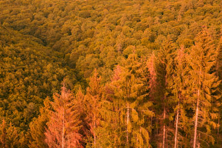 Autumn landscape. Aerial view. Autumn forest on the hill