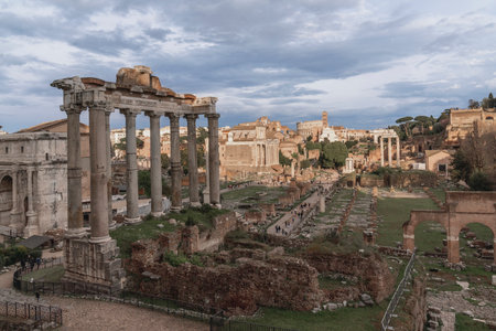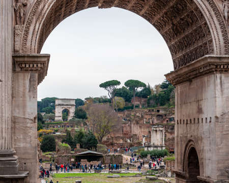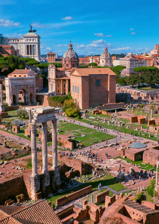 Roman Forum and Ruins of Septimius Severus Arch and Temple of Saturn, Rome, Italy.