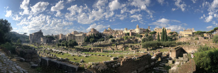 Panoramic image of Roman Forum, also known as Foro di Cesare, or Forum of Caesar, in Rome, Italy