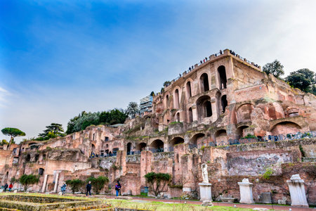 Panoramic landscape of the ruins of the Imperial Forums in Rome. Italy
