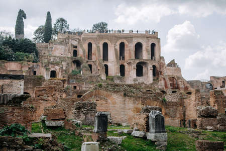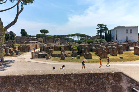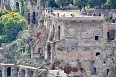 Rome, Italy, September 9, 2015: Tourists visit the ruins on the Palatine Hill in Rome.