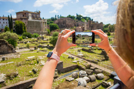 Rome Italy. Eternal city famous in the world. The historic center is on the UNESCO World Heritage List with many points of archaeological interest. View of the Roman Forum.