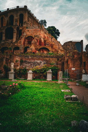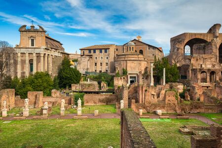 Roman Forum ruins in Rome, Italy. Italian ancient buildings and famous landmarks