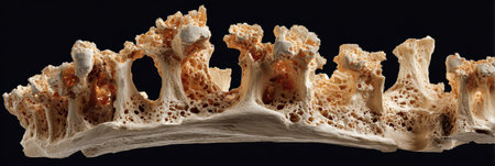 This close-up view showcases the complex structure of a vertebra, highlighting its unique textures and porous features, showing natures design.
