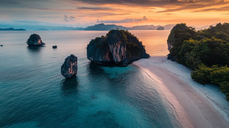 A scenic drone shot of the Andaman Sea with Thailands iconic islands.