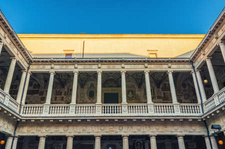 Padua, Italy, September 12, 2019: The Bo Palace Palazzo del Bo building courtyard, historical seat of University of Padua in Padova city centre