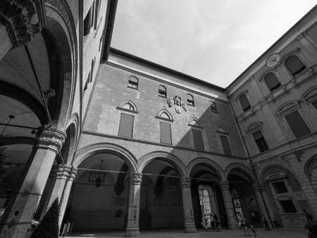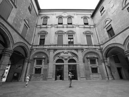 BOLOGNA, ITALY - CIRCA SEPTEMBER 2017: D Accursio Palace city Hall in black and white
