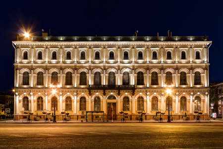 St. Petersburg, Russia - May 31, 2016: Night illuminated facade of building of NIVavilov Institute of Plant Genetic Resourses front view