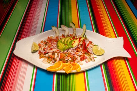 A lot of delicious snack on a mexican hat. Mexican snacks on a wooden table