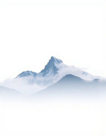mountain in clouds on a white background, beautiful photo digital picture