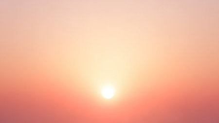 Soft sunset sky with a bright sun and a gradient of warm orange and pink hues. Clear details and vibrant color...