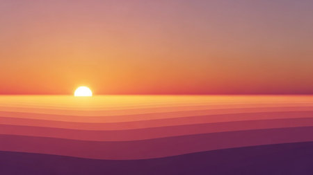 A minimalist sunset over a calm ocean with a soft gradient sky and gentle reflections on the water's surface.