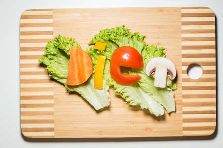 Vegetables in the form of letters on a cutting board