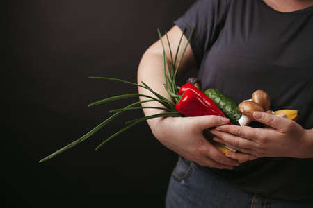 Female hands holding a bunch of fresh vegetables
