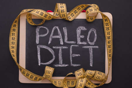 fresh vegetables, measuring tape on wooden background