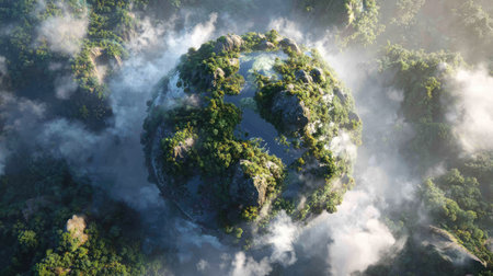A stunning view of Earth surrounded by lush greenery, highlighting the beauty of nature. This image captures the essence of environmental harmony and vitality.