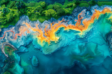 Aerial View of Vibrant Geothermal Springs with Vivid Natural Colors in Exotic Ecosystem - A Wonder of Nature Landscape from Above