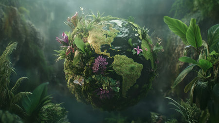 A stunning depiction of Earth adorned with vibrant flora, showcasing the beauty of nature. Ideal for themes of ecology, diversity, and environmental awareness.