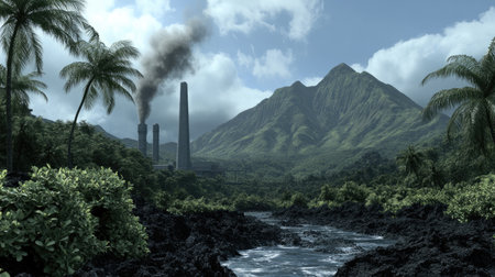 Visualize a vibrant geothermal plant nestled in a lush, volcanic landscape, showcasing the earth's sustainable energy potential --chaos 30 --ar 16:9 --v 6.1 Job ID: 777341cd-020e-4972-a937-43db0da72728
