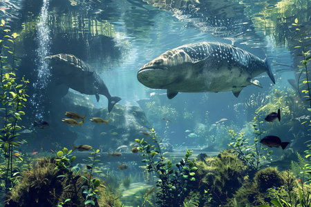 Majestic Large Fish Swimming in Underwater Scene with Dynamic Lighting and Detailed Scales A Vivid Aquatic Illustration AI Generative