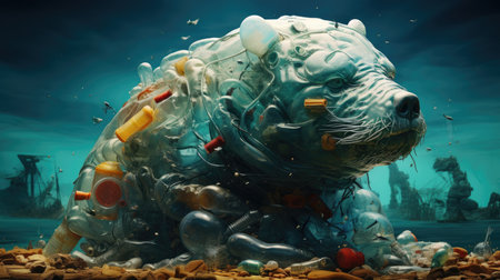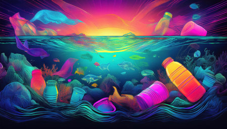 An AI generated illustration of a great Pacific garbage patch in the ocean