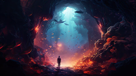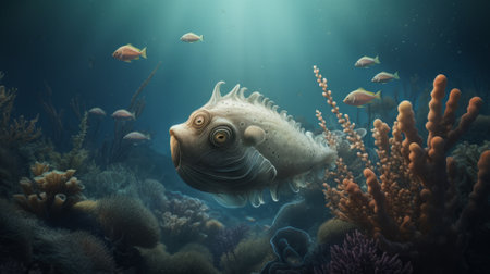 Vibrant underwater life featuring diverse marine creatures and a striking deep-sea environment