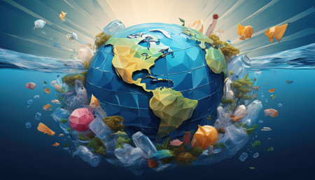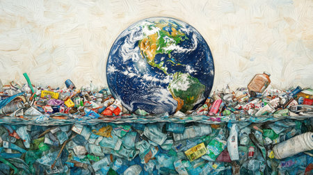 This striking image depicts Earth encircled by various types of plastic waste, highlighting the urgent environmental issues that challenge global populations.