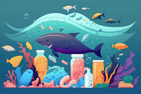 Marine life and plastic waste. Seafood is tainted by microplastics