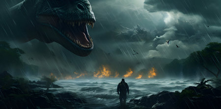 Journey to the Jurassic: world of dinosaurs, extinct species with big, strong, toothy predators, prehistoric era and the fascinating realm of ancient reptiles.