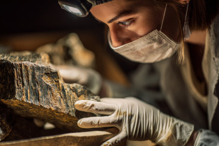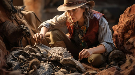 An archaeologist is meticulously studying ancient fossils within a rich and historically significant excavation site. Generative AI