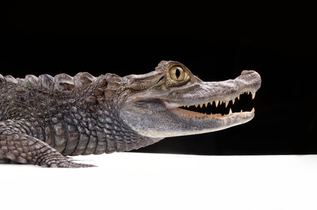 small crocodile isolated on the black background