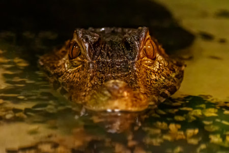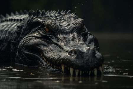 Close up of an American alligator lurking partially submerged, its textured skin and watchful eyes creating a captivating scene of reptilian power