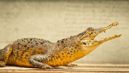 Crocodile with open mouth. Photo tinted in yellow